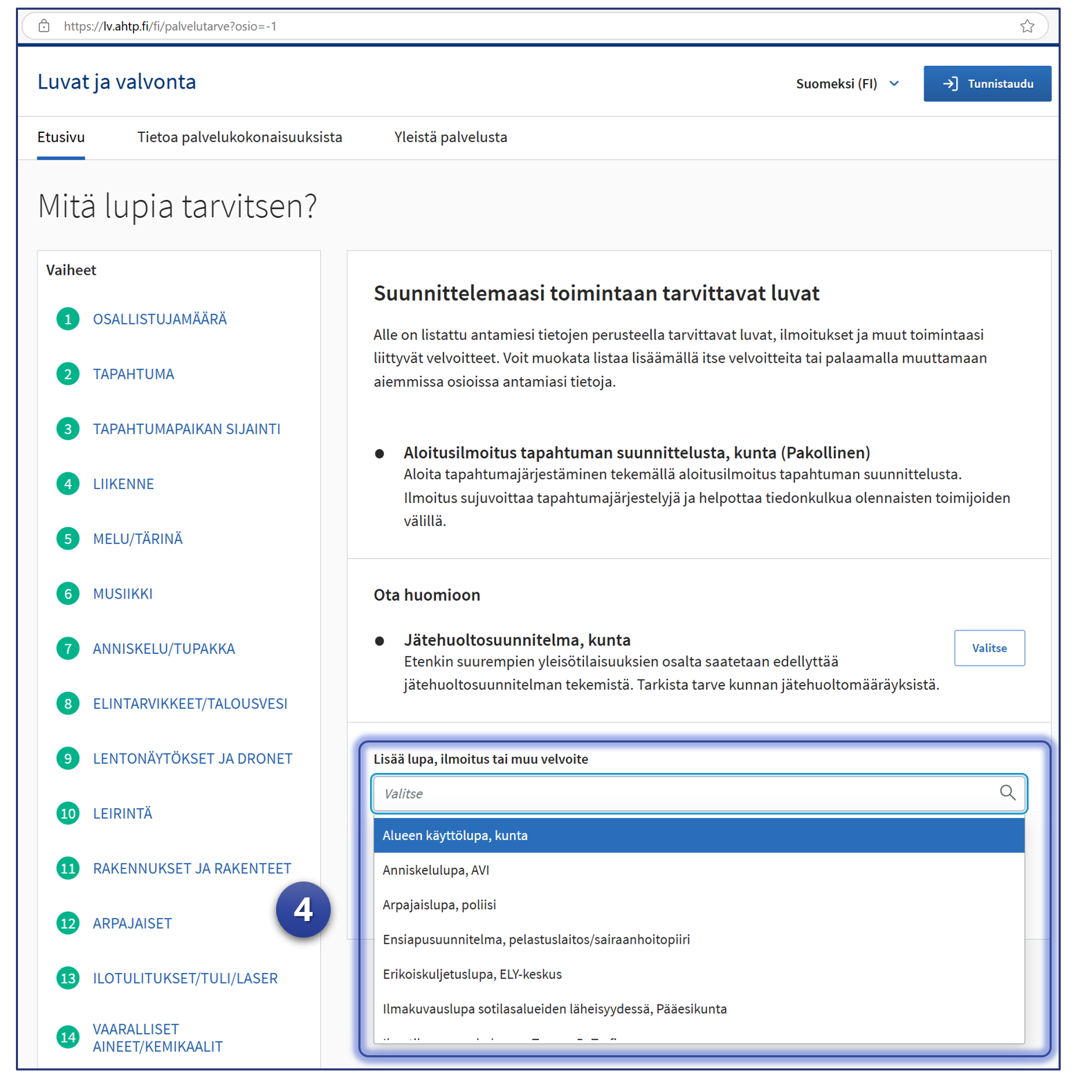 3. Tunnistaudu Luvat ja valvonta -palveluun