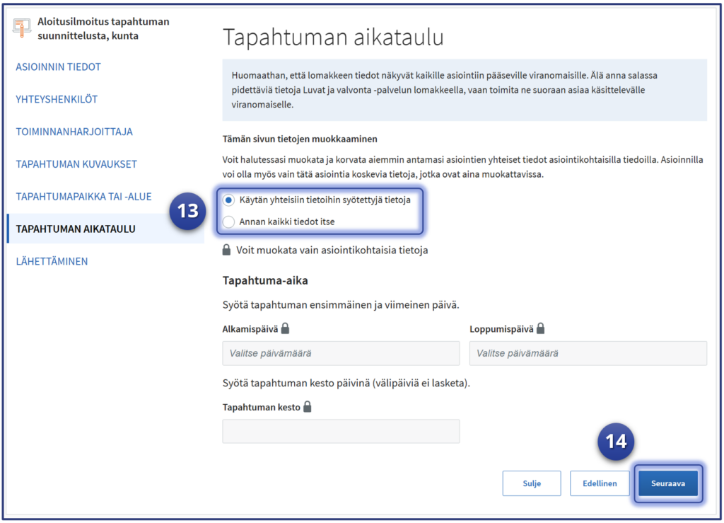 14. Kun tiedot on annettu, voidaan jatkaa. Valitse “Seuraava“