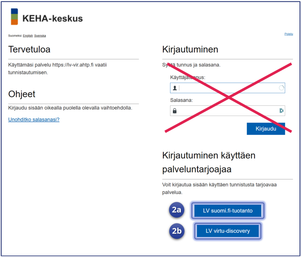 2b. Virtu-kirjautumista käyttävät viranomaiset, valitse “LV virtu-discovery“