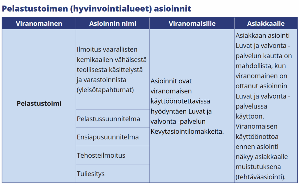 Tällä viikolla Luvat ja valvonta -palveluun julkaistiin kaksi uutta pelastuslaitoksien menettelyä, jotka ovat nyt kaikkien pelastuslaitoksien käyttöönotettavissa. Uudet menettelyt ovat: